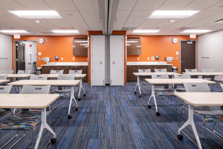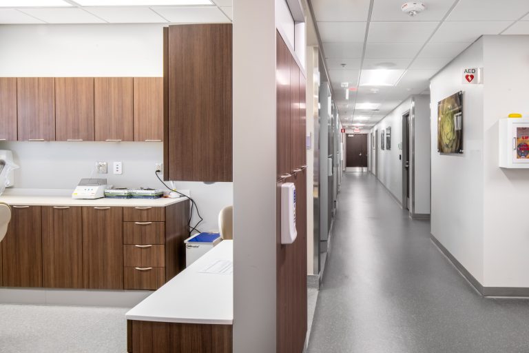 At the heart of the project is a new rehabilitation building, along with the renovation and expansion of specialty care clinics, simulation and training spaces, dental and mental health departments, and ambulance bays. Thoughtful planning optimized patient flow, improved staff efficiency, and modernized infrastructure. To facilitate the phasing of the project, HFG was responsible for the design and phased coordination of layouts for three complex Temporary Phasing Facilities that enabled continuous operations during construction.