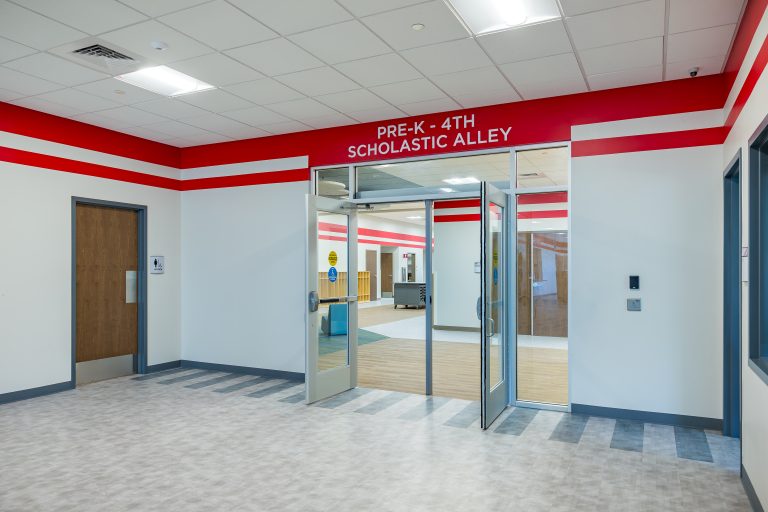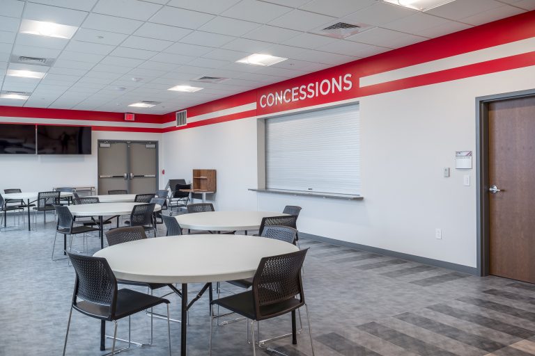 Designed to mimic typical aesthetics in the region, the school and gymnasium are metal buildings that will withstand the extreme seasonal conditions and wind in northwest Kansas. It includes a public storm shelter that doubles as a community activity room for City of Logan resident use.