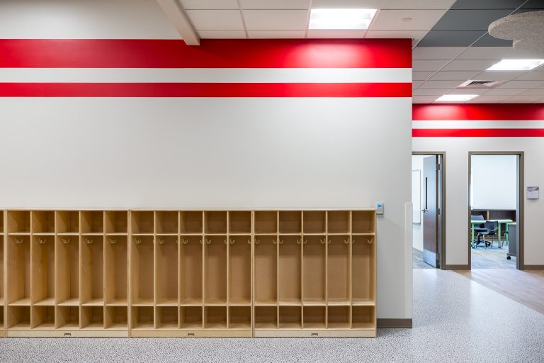 Intersecting the two facilities is a children’s and elderly playground with a gymnasium, large enough to house indoor basketball and volleyball courts for hosting regional tournaments for nearby communities. Senior living residents are encouraged to take advantage of easy access to watch games being played as well as activities at the nearby high school.